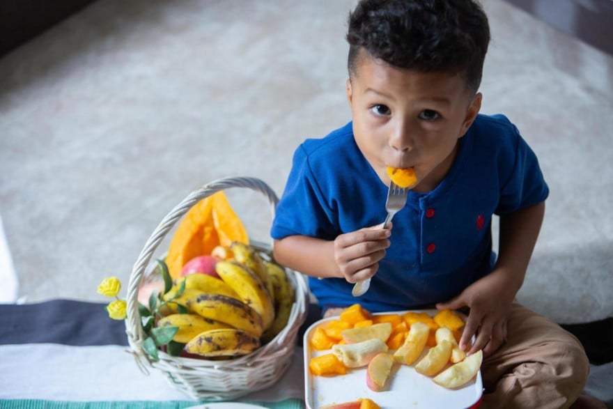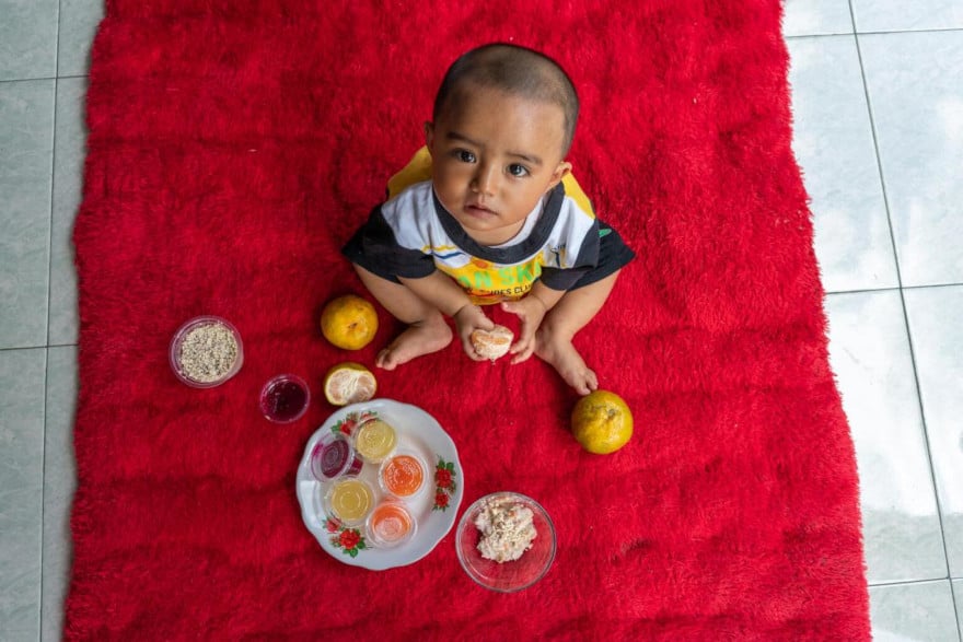 Jayden, de 3 años, vive en el municipio de Dili en Timor Oriental. Le encanta comer frutas, como papaya, plátanos y manzanas.
