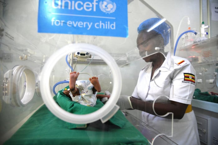 Un bebé recibe atención neonatal en la Unidad de Cuidados Intensivos apoyada por UNICEF en Uganda. © UNICEF/UNI766099/