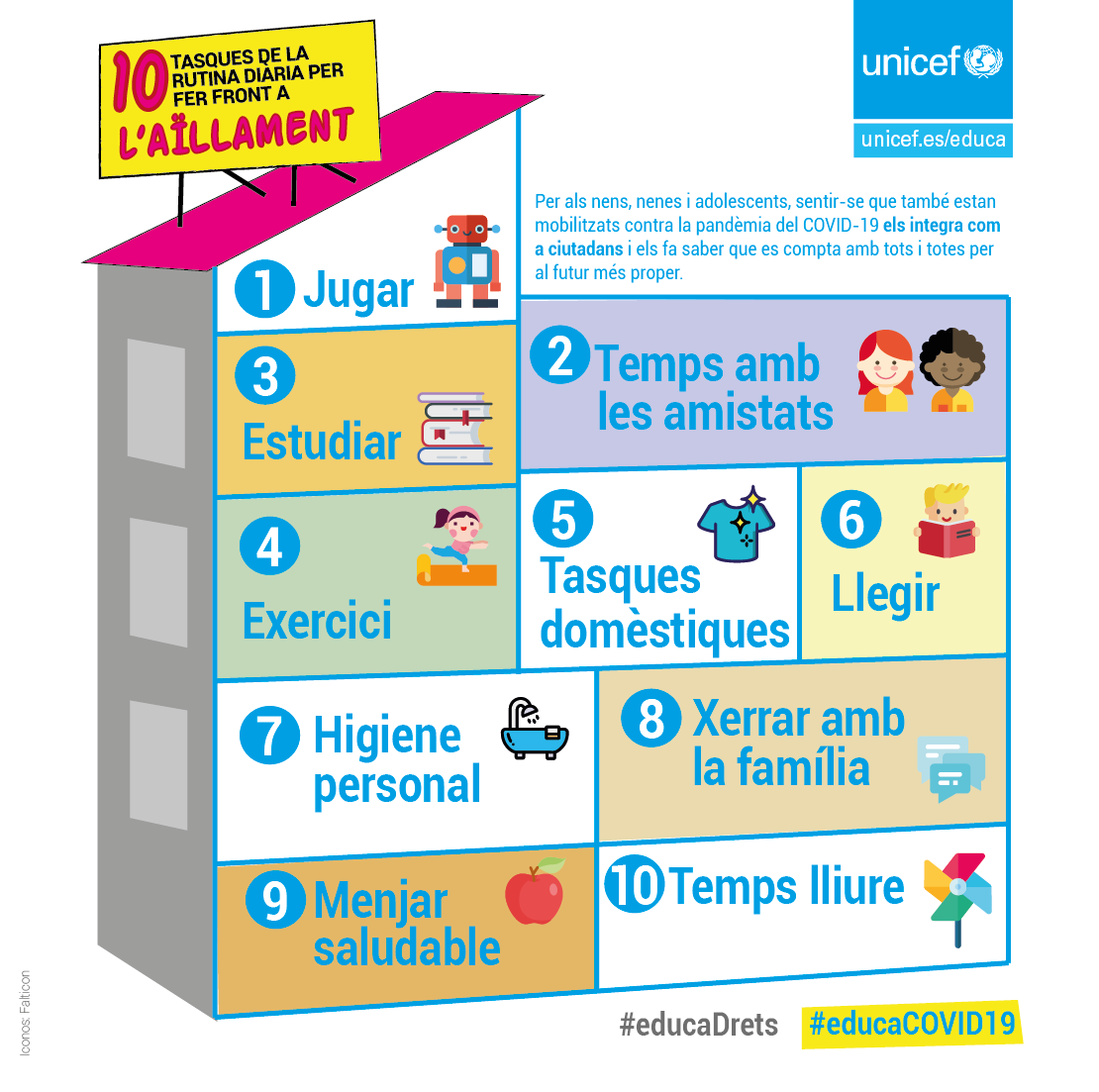 L'establiment de rutines durant aquests dies d'aïllament suposa una oportunitat per comptar amb l'opinió, la responsabilitat i el compromís dels nens, nenes i joves.