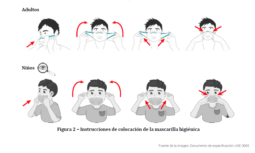 - Especificació UNE 0065 de requisits mínims que han de complir les mascaretes higièniques reutilizables per a infants i adults