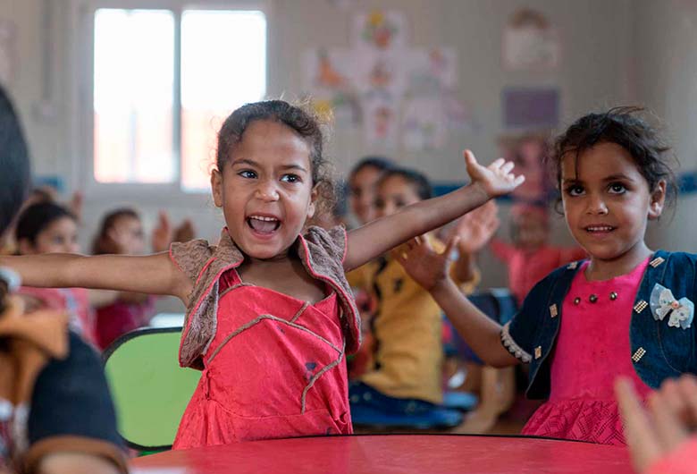 A comienzos de este año un equipo de UNICEF visitó la escuela de Manar para dar a los niños y niñas sesiones de apoyo psicosocial en las que les enseñan a expresar sus sentimientos y a gestionar sus emociones. Allí ha hecho un buen progresado y está superando su timidez a la vez que aprende a interactuar con sus amigos.