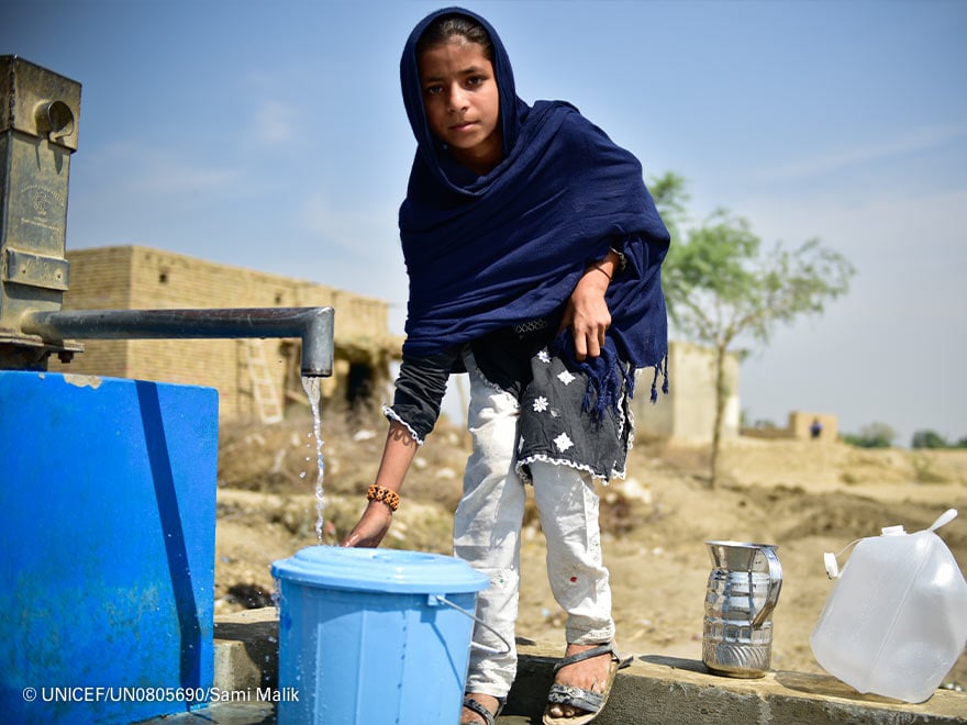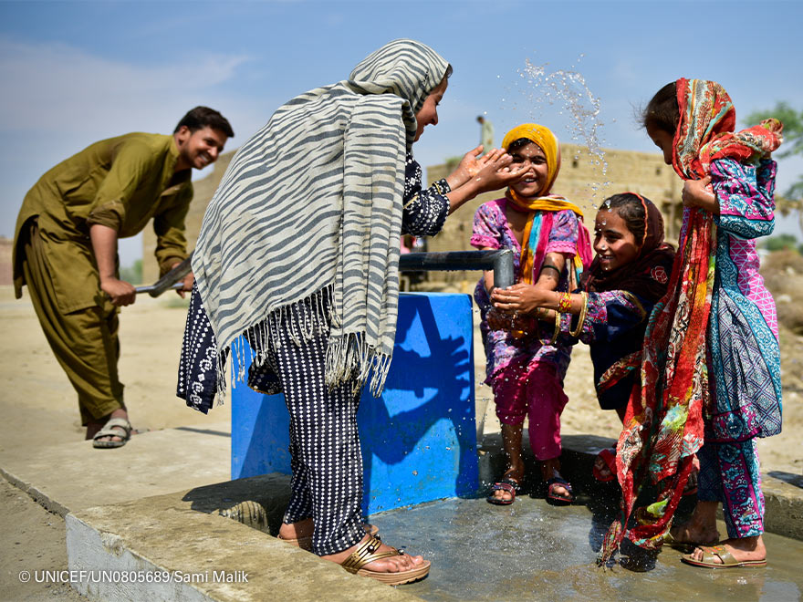 Han pasado más de seis meses desde que las lluvias torrenciales y los desbordamientos de Pakistán sumergieran al país en una crisis humanitaria sin precedentes. Más de 3.000 kilómetros de carreteras bloqueadas, 150 puentes destruidos, cosechas arruinadas y más de 33 millones de personas afectadas que, a día de hoy, siguen sin poder volver a la normalidad. A todo esto, hay que sumarle la escasez de agua potable, algo a lo que ya tenían que hacer frente incluso antes de las inundaciones y que se ha convertido en la prioridad de los equipos de UNICEF sobre el terreno. Gracias a tu colaboración con el programa Unidos por el cambio climático, cientos de familias de la región de Punyab están recuperando la esperanza y disfrutan de algo tan básico como estaciones de saneamiento y agua apta para el consumo.