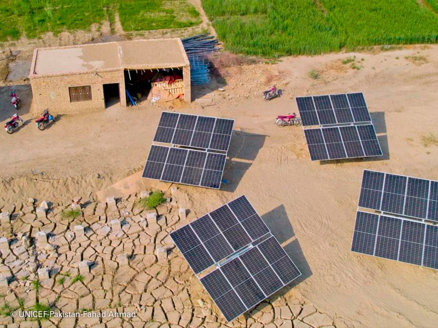 “Los nuevos sistemas de abastecimiento de agua construidos por UNICEF usan energía solar para alimentar las bombas de agua. Esto supondrá un gran alivio en la carga económica de las comunidades, que antes tenían grandes dificultades a la hora de pagar las facturas de la luz. Como no podían hacer frente a ese gasto, muchos de estos sistemas fueron abandonados y los lugareños empezaron a usar agua subterránea sin tratar”, nos explica Rauf Sumbal, director de Desarrollo Comunitario.