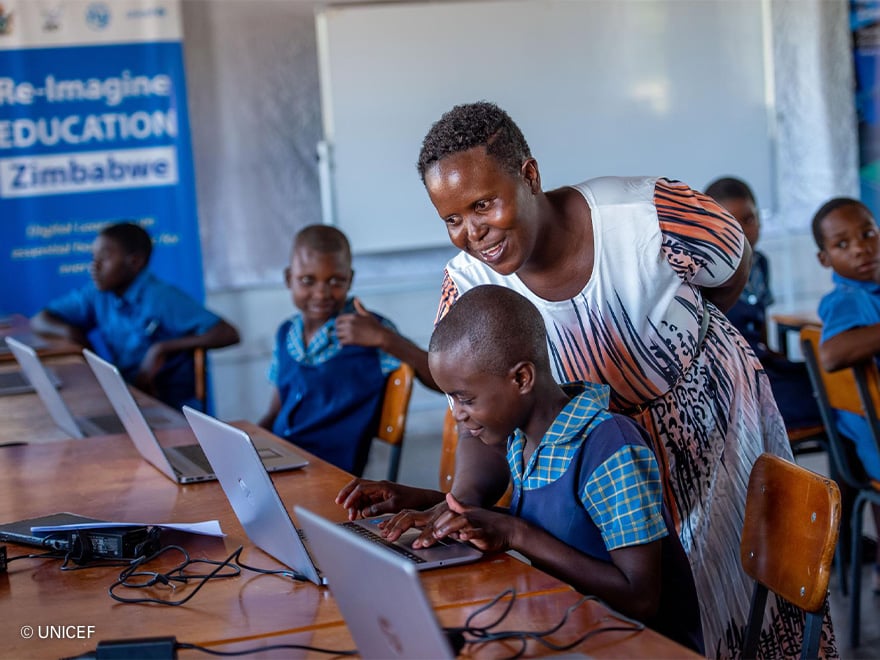 Como dice Zeinab Adam, representante de UNICEF en Zimbabue, “Reimaginar la Educación tiene que ver con garantizar que la educación sea accesible, flexible, inclusiva y sostenible, pero también innovadora. Necesitamos asegurarnos de que todos los niños, incluidos los de comunidades remotas y marginadas, tengan acceso a la educación”.