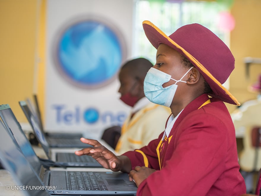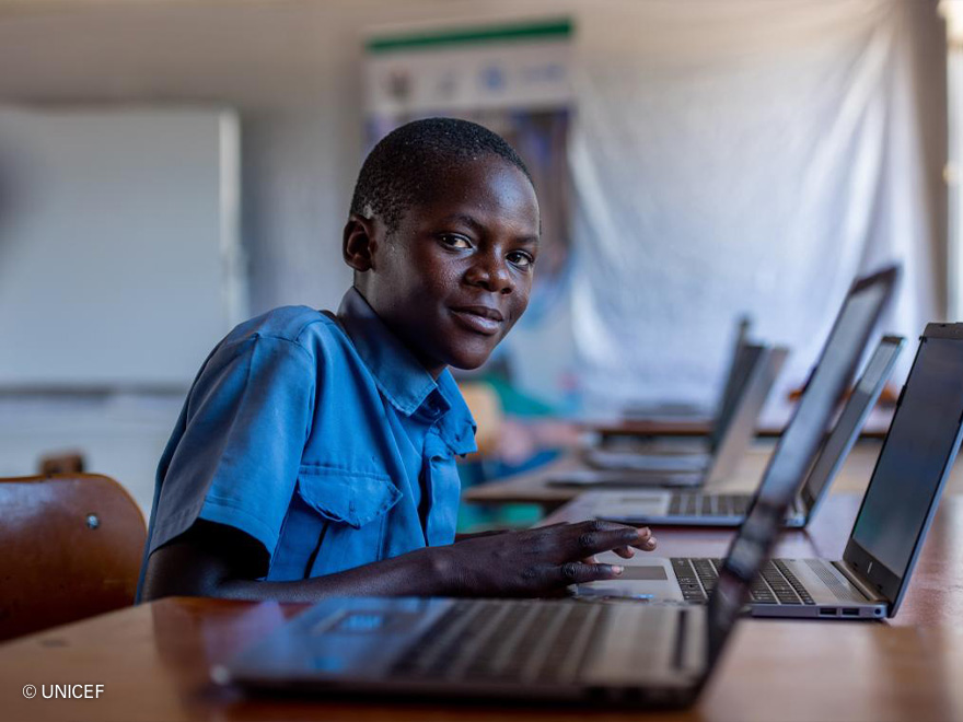 El programa Reimaginar la Educación de UNICEF se centra en seis áreas clave: educación ecológica, soluciones de aprendizaje digital, conectividad, acceso a dispositivos, contenido y datos asequibles y participación de los jóvenes.
