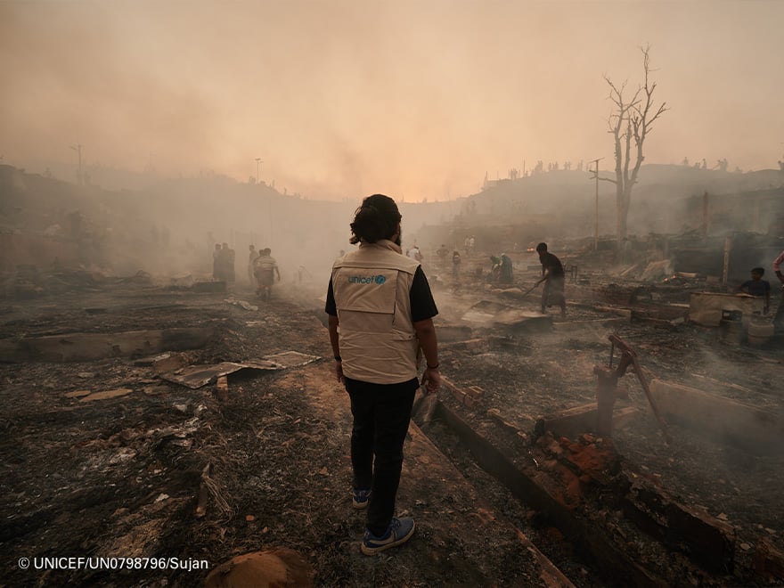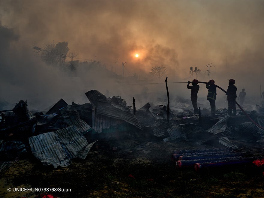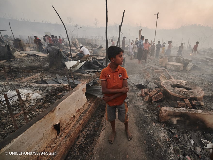 El campo de refugiados de Cox’s Bazar vuelve a sufrir un incendio catastrófico, dejando a más de 30.000 niños y niñas en necesidad de ayuda humanitaria urgente. Descubre cuál está siendo la respuesta de UNICEF frente a esta nueva tragedia.