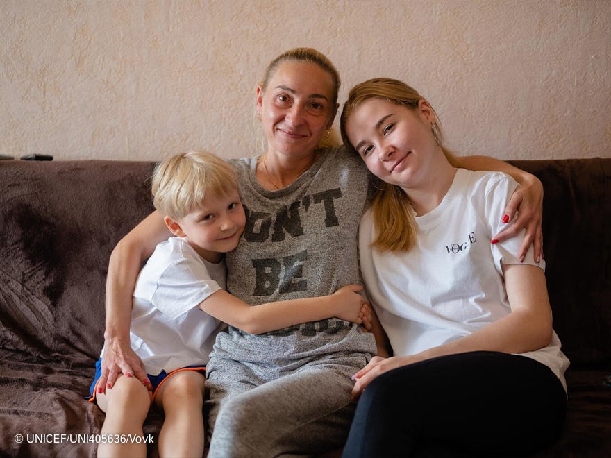 En esta crisis humanitaria, que ahora también es climática, ya que ha sido calificada por el viceministro ucraniano de Asuntos Exteriores como la peor catástrofe ambiental en Europa desde el desastre de Chernóbil, hay tantas historias como familias afectadas. Sin embargo, todas ellas tienen un denominador común: todas cuentan con el apoyo de UNICEF para volver a empezar de cero gracias a la ayuda de personas como tú. Te invitamos a conocer a tres de estas familias y a descubrir de qué manera estás contribuyendo a que las niñas y los niños ucranianos crezcan felices y en paz.