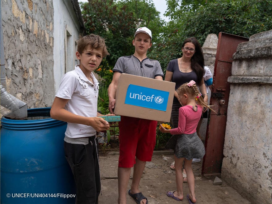 La reciente explosión en la central de Kakhovka, ha provocado un aumento del precio de los alimentos, por lo que la ayuda de UNICEF está siendo clave para que esta familia numerosa pueda tener sus necesidades básicas cubiertas.