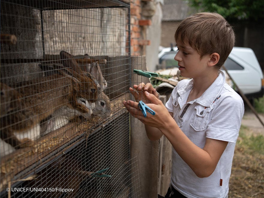 Andriy nos enseña cómo cuida de los conejos para ayudar en el negocio familiar.