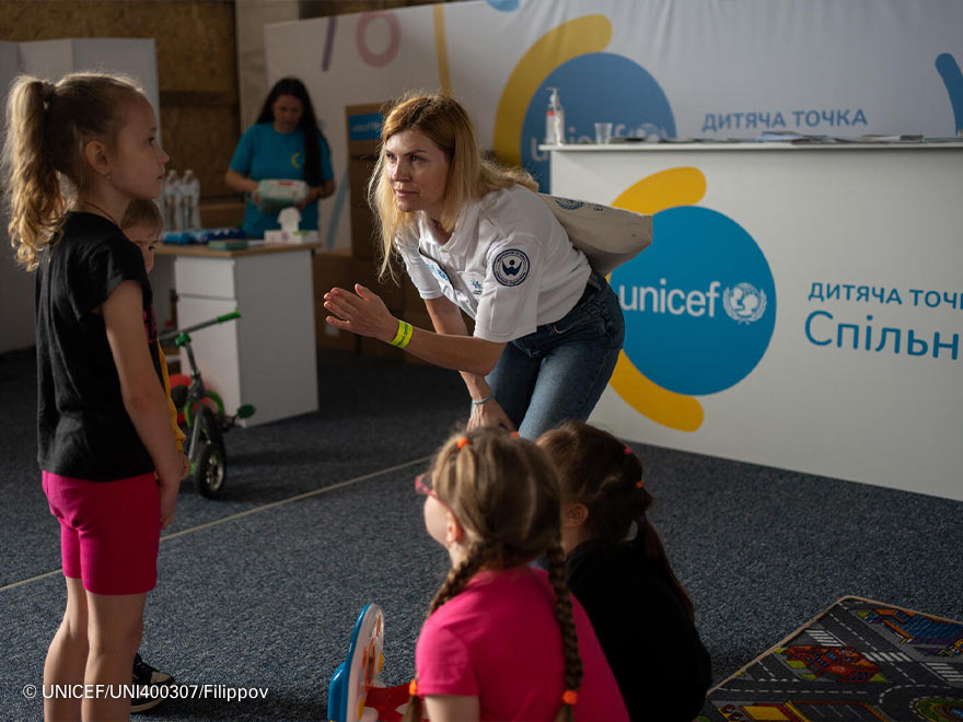 Su hija menor, que nació hace tan solo cuatro meses, se llama Mira, que se traduce como “paz” al castellano. Sus otros cuatro hijos fueron quienes ayudaron a Anastasia a elegir el nombre. Ella misma nos reconoce que tener que vivir una guerra con tantos niños en casa supone un esfuerzo tremendo: “Sin la ayuda de UNICEF, probablemente no habría podido hacer frente a esta situación, ni financiera ni emocionalmente”, nos confiesa. “Cuando estaba embarazada, un día vi a mis hijos mayores cavando un hoyo en el jardín. Querían construir un búnker para que yo pudiera estar a salvo de los bombardeos. Es muy duro escuchar eso de niños tan pequeños”.