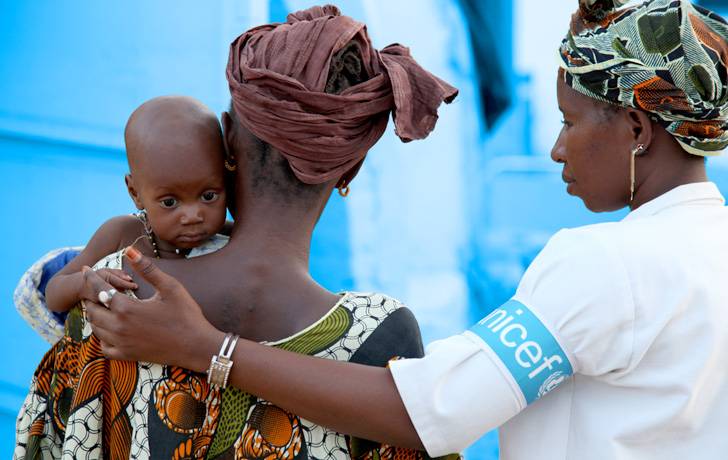 Una colaboradora UNICEF ayuda a una madre con su bebé