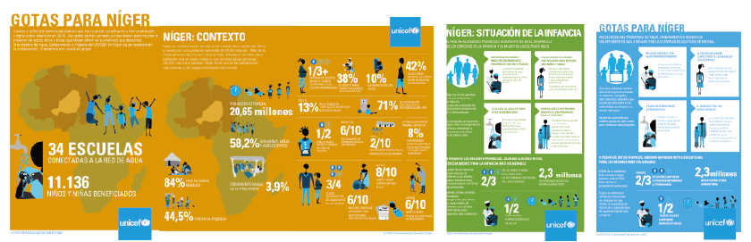 Este conjunto de infografías te puede ayudar a explicar algunos datos sobre la situación de la infancia en Níger. Pueden imprimirse a mayor tamaño y usarse como póster.