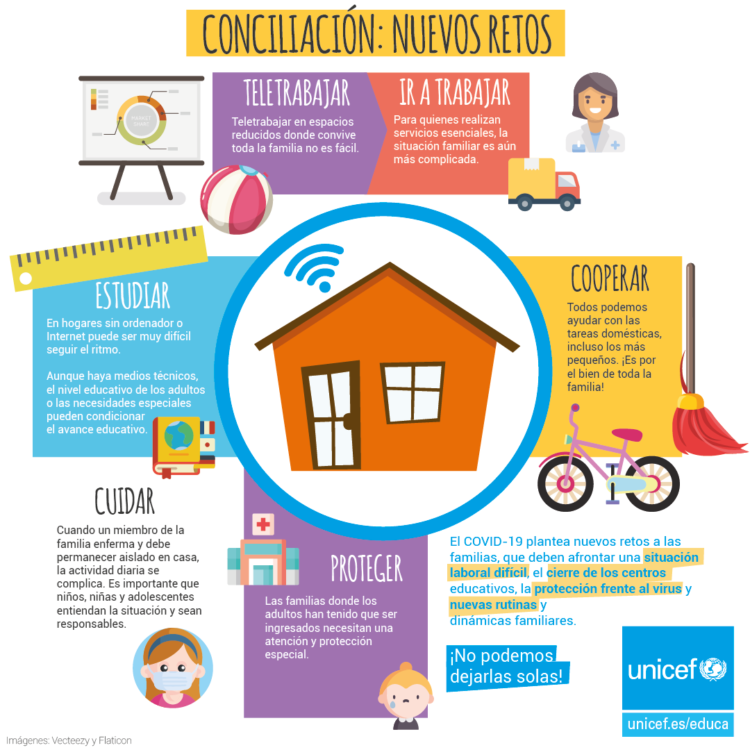 O peso destes novos retos de conciliación non pode recaer só sobre as familias. Algunhas cousas, como as tarefas domésticas ou o apoio escolar, pódense repartir entre os seus membros, pero outras supoñen un novo esforzo polo que hai que estar preparado e pode ser difícil. As familias necesitan apoio das institucións educativas, os servizos sociais ou das empresas onde traballan os adultos.