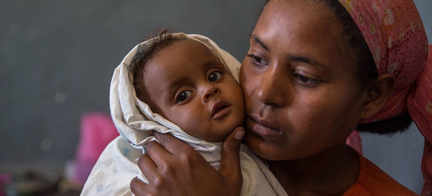 Hawal pesaba solo 3,5 kilos cuando llegó. Apenas ocho días después, empieza a recuperarse gracias a la leche terapéutica especial que UNICEF proporciona a los centros de salud y hospitales de Etiopía para los niños con desnutrición aguda grave. Su madre no tiene ninguna duda de que esta leche le ha salvado la vida a su hijo, pero está muy preocupada.