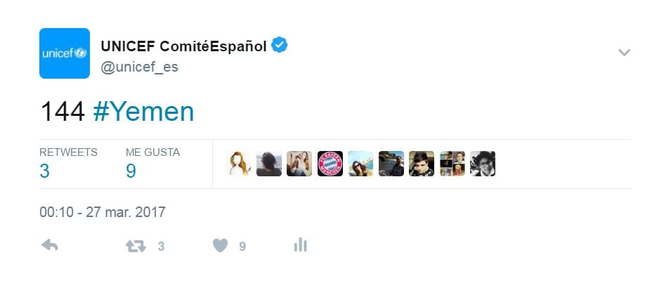 En UNICEF queríamos llamar la atención sobre la terrible situación que están viviendo los niños en Yemen, para que su sufrimiento deje de ser invisible. A las 00:10 del pasado domingo lanzamos este tuit: