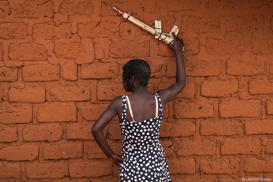 República Centroafricana, uno de los conflictos más olvidados de la actualidad, nos ha dejado duros testimonios este año. Por suerte, muchos tienen un final feliz. Elodie estuvo tan solo 2 meses en la milicia anti-balaka, pero fueron más que suficientes. Cocinaba para ellos. Un día, cuando los demás estaban fuera, el hombre que vigilaba el campamento abusó de ella y la marcó para siempre. Ahora, con el apoyo de UNICEF y Cáritas ha vuelto a la escuela. En 2017 hemos contribuido a liberar a más de 4.500 niños y niñas soldado como Elodie en este país.