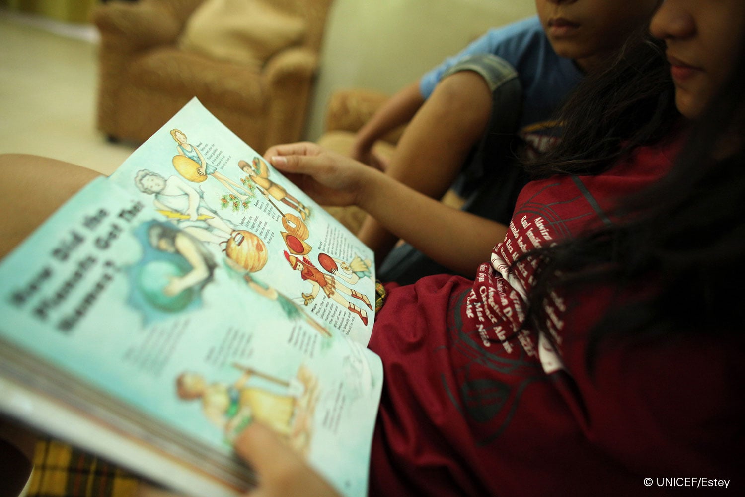 En la imagen superior, Rosalyn le lee un cuento a su hermano pequeño.