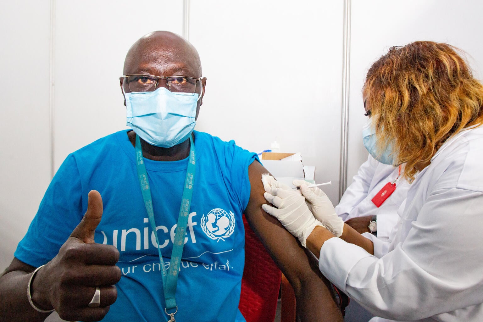 Un trabajador de UNICEF vacunado contra la COVID-19
