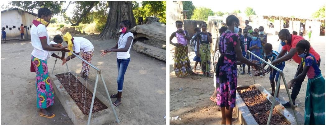 Un grupo de niños y adolescentes se lava las manos en escuelas de Guinea-Bissau