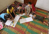 - La distribución de 112 equipos de recreación para actividades bajo techo a familias de las ciudades septentrionales de Beit Lahia y Beit Hanoun.