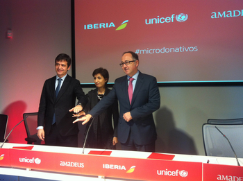 Iberia, UNICEF y Amadeus han puesto en marcha una iniciativa mundial que permite a los clientes de la aerolínea realizar microdonativos a UNICEF a través de una plataforma tecnológica que se integra en la web de iberia.com.