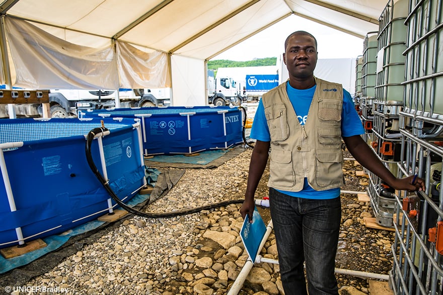 Abner Dorvil, especialista en emergencias de UNICEF en Haití, fue de los primeros trabajadores humanitarios en llegar a la zona afectada. Solo dos días después de la tragedia, en cuanto las condiciones meteorológicas fueron favorables, Abner ya estaba en Jérémie preparado para evaluar las necesidades de los niños.