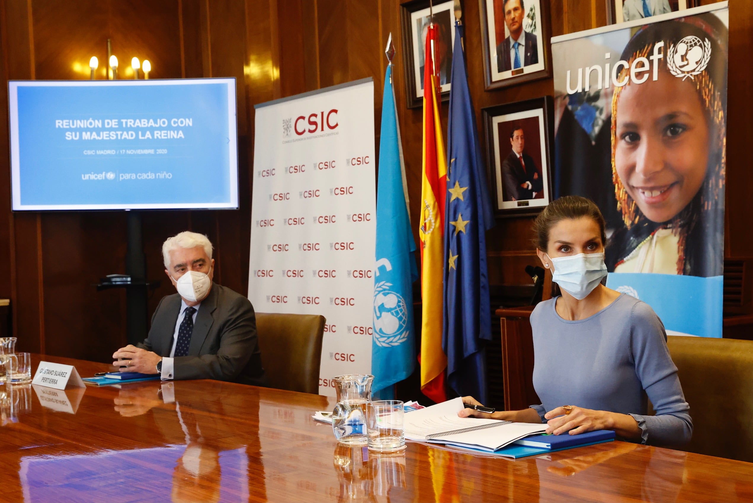 La Reina ha tenido la ocasión de conocer el impacto de nuestra lucha contra la COVID-19 en España y a nivel global e interesarse por nuestros esfuerzos en temas claves para la garantía de los derechos de los niños como la salud física y mental, el acceso seguro a los centros educativos y la brecha digital, o la lucha contra el aumento de la pobreza infantil.