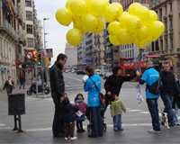Por la mañana, se repartirán 4.000 globos Dubu en distintas zonas estratégicas de la Ciudad Condal: Plaza Catalunya, Plaza Universitat, Plaza Urquinaona, Jardinets de Gracia, Maremágnum y en los alrededores de las instalaciones del FC Barcelona.
