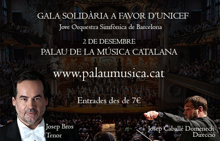 La Jove Orquestra Simfònica de Barcelona ofrecerá el próximo 2 de diciembre un concierto solidario a favor de UNICEF, en conmemoración del 30 aniversario de la Convención sobre los Derechos del Niño (CDN). Tendrá lugar a las 20:00 horas en la Sala de Conciertos del Palau de la Música Catalana.