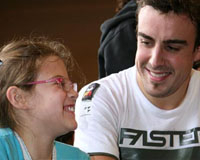 Después de jugar un partidillo de fútbol los niños pidieron autógrafos y Alonso se sentó con ellos durante unos minutos para responder a sus preguntas sobre la infancia y la carrera del piloto. La charla les dio a los niños, según el Embajador de UNICEF-Comité Español, la perspectiva de que “somos iguales y de que, con esfuerzo, todos podemos conseguir cosas”.