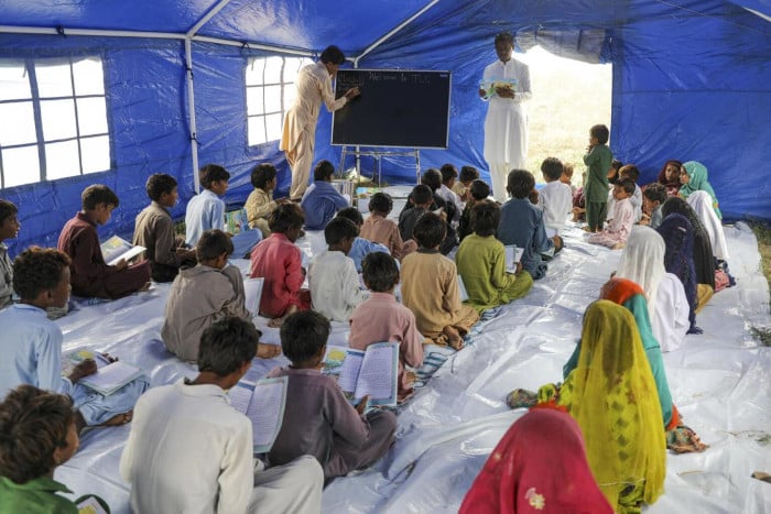 La pandemia de COVID-19 condujo al cierre de las escuelas en Pakistán, situación que se ve visiblemente agravada por la destrucción de miles de escuelas en todo el país después de las inundaciones.