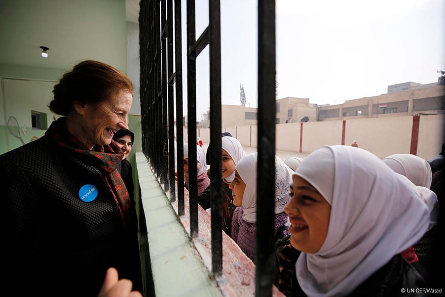 Henrietta H. Fore, directora ejecutiva de UNICEF, durante su visita a Siria.