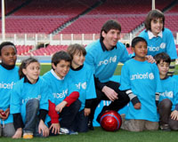 El mejor jugador de la FIFA 2009 ha sido nombrado Embajador de Buena Voluntad de UNICEF. El acto de nombramiento se ha celebrado en Barcelona y ha contado con la participación de Leo Messi, el Presidente del FC Barcelona, Joan Laporta, y el Director global de Alianzas Corporativas de UNICEF, Philip O?Brien. Messi ha estado arropado además por el entrenador del FC Barcelona, Pep Guardiola, su compañero de equipo Xavi Hernández, su padre Jorge Messi y uno de sus hermanos, Rodrigo