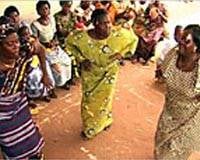 Las mujeres vestidas con coloridas prendas que bailaban en círculo interrumpen la celebración para dedicarse de lleno al quehacer bancario. Aunque lassumas de dinero que se solicitan en préstamo y se devuelven puedan parecer pequeñas, cada una de las modestas contribuciones que hacen estas mujeres al "banco" representa una importante ayuda.