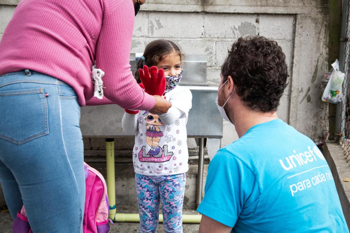 A medida que las escuelas vuelven a abrir con medidas mejoradas para la seguridad de los estudiantes y los profesores, desde UNICEF trabajamos con el Ministerio de Educación para poner de relieve los desafíos que enfrentan el 30% de las escuelas, que carecen de agua corriente y otras medidas de higiene y saneamiento seguras. Esto significa llegar a aproximadamente 6,4 millones de estudiantes, proporcionando acceso a agua limpia y jabón o un suministro temporal de desinfectante de manos para todos los niños, mientras se introducen medidas más sostenibles.