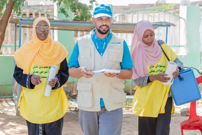 Seguimos a Mohamed Almugtba Khider durante una campaña de vacunación contra la polio casa por casa de cuatro días para comprender qué se necesita para que estos esfuerzos tengan éxito. © UNICEF/UNI781924/Mohamed Mahdi