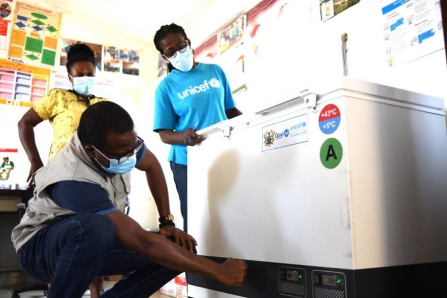 Desde 2017 y hasta abril de 2021, UNICEF, en colaboración con GAVI, entregó más de 100.000 refrigeradores para mantener la cadena de frío de las vacunas a 100 países. Más de la mitad de estas unidades contaban con sistemas de energía solar, vitales para mantener las vacunas a la temperatura adecuada en lugares donde la electricidad es menos confiable.