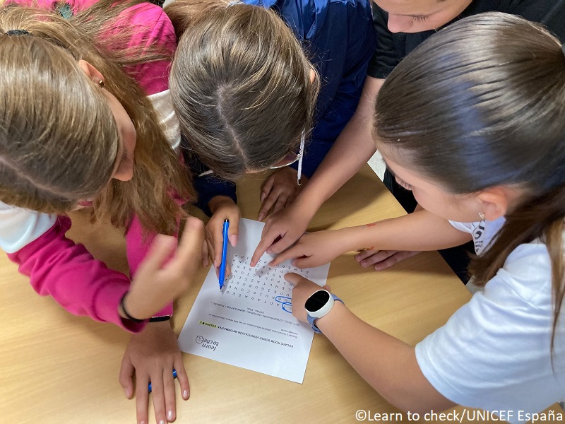 300 niñas, niños y adolescentes de educación primaria y secundaria de seis centros educativos participan en una iniciativa puesta en marcha por UNICEF España y Learn to Check para luchar contra la desinformación