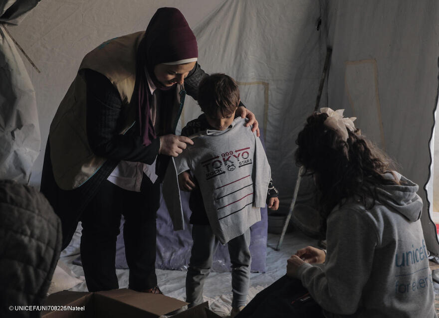 Los equipos de UNICEF en el terreno siguen trabajando incansablemente, distribuyendo ropa de invierno, mantas y suministros de emergencia para los niños y niñas. Sin embargo, la capacidad de las organizaciones humanitarias para entregar ayuda esencial a la escala requerida se sigue viendo muy restringida. En noviembre entraron en Gaza una media de 65 camiones con ayuda al día, una cifra muy insuficiente para cubrir las necesidades urgentes de los niños, las mujeres y otros civiles. La parte más septentrional de Gaza lleva más de dos meses bajo un asedio casi total.