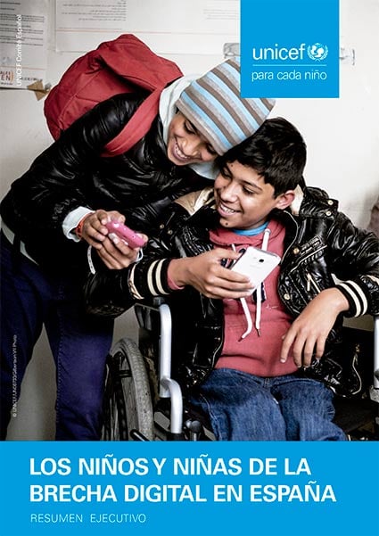 Bajo la perspectiva de los derechos del niño, y teniendo en cuenta la realidad del mundo digital en España, UNICEF España lanza el informe Los niños y las niñas de la brecha digital en España, que analiza las oportunidades y riesgos de internet y profundiza en los colectivos más vulnerables en nuestro país, los niños y adolescentes.