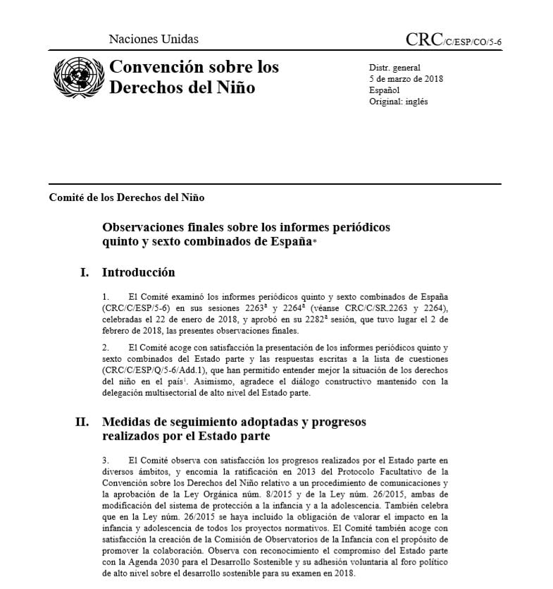 El Comité de los Derechos del Niño de Naciones Unidas publica sus Observaciones Finales sobre los derechos de la infancia en España