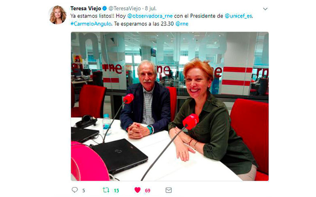 Teresa Viejo es una de las principales valedoras de la labor de UNICEF tanto en medios de comunicación a través de entrevistas con especialistas de UNICEF como en redes sociales, dedicando reflexiones en profundidad sobre temáticas de UNICEF a través de sus cuentas de LinkedIn y Twitter. Además, Teresa realiza llamamientos a sus seguidores para la colaboración en situaciones de emergencia, en las cuales la respuesta en las primeras 48 horas es clave.
