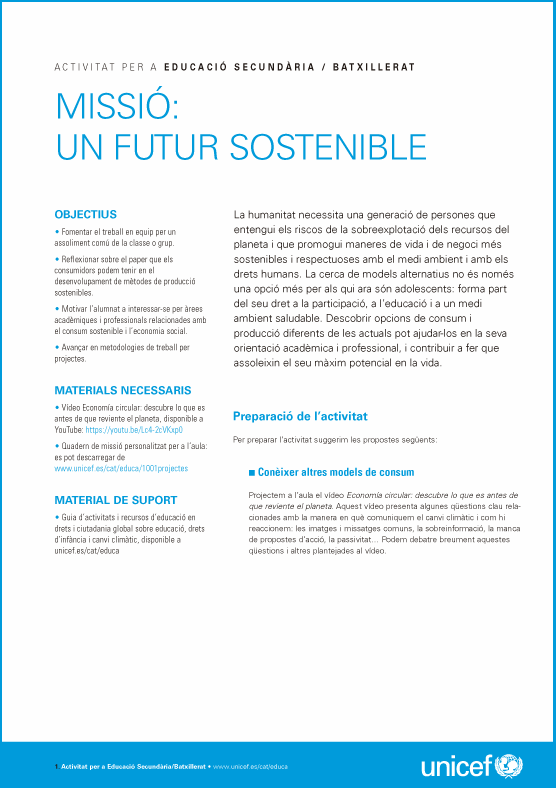 Activitat per a Educació Secundària: Missió: un futur sostenible