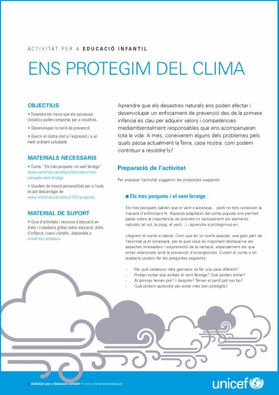 Desenvolupar un enfocament de prevenció des de la primera infància és clau per adquirir valors i competències mediambientals que ens acompanyaran tota la vida. Aquesta activitat es completa amb el conte “Els tres porquets i el vent ferotge”.