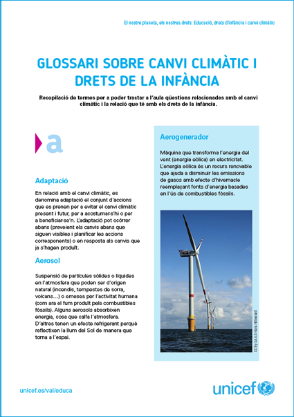 Conèixer els problemes relacionats amb el canvi climàtic, ser capaços de formar-nos-en una opinió crítica i informada i tenir la llibertat i el suport per expressar-la són primeres passes clau per comprometre’ns amb accions que contribueixin a la protecció del medi ambient. L’activitat inclou dos vídeos en què infants de diferents llocs expressen les seves visions del canvi climàtic.